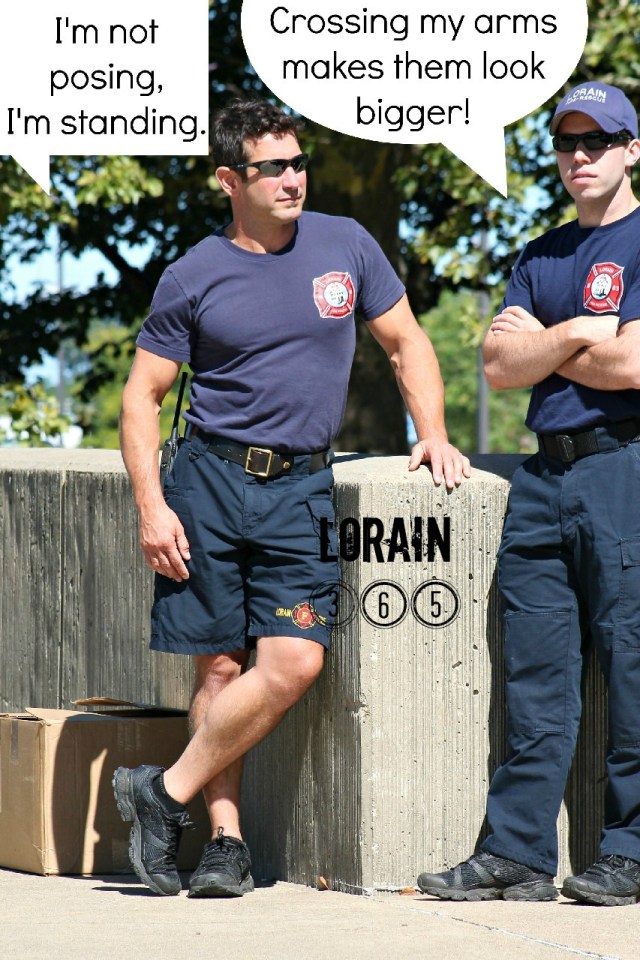 Takes-all-the-fun-out-of-it-but-is-necessary DISCLAIMER: I do not know these guys, they do not know me; I don’t want your man; I don’t know if they knew I was taking pictures of them and/or in their general direction at a public event; this post is meant to be humorous and all in good fun; this post is not meant to get anyone in trouble or hurt anyone’s feelings; a request from either of the two firemen pictured or their chief to remove this post will be honored as soon as possible; Lorain 365 ♥s LFD; Thank you for all you do! This is a “What I Think They’re Thinking” production 😎 -lisa