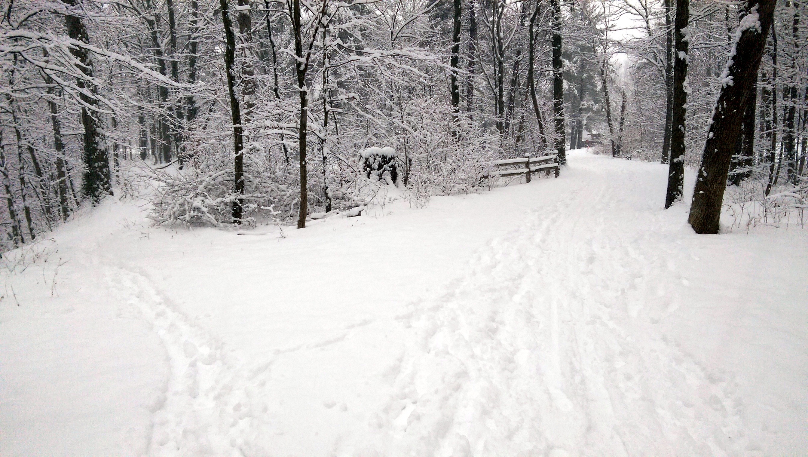 Tonight’s guest post courtesy of our friend, Jim Themorestuffguy, who went for a 4.38 mile hike at French Creek Park in today’s snow”storm”.