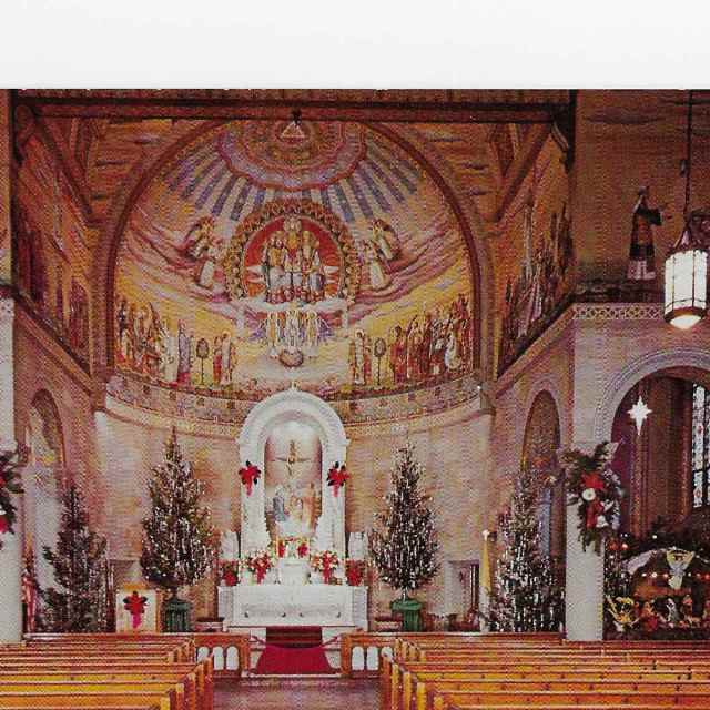 Postcard of Holy Trinity Lorain at Christmas